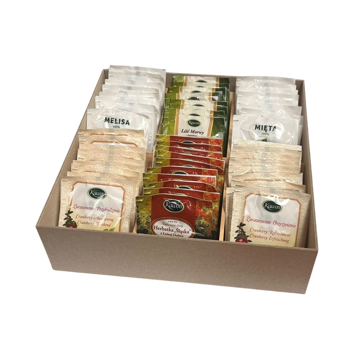 Zestaw 60 herbatek o 6 różnych smakach.